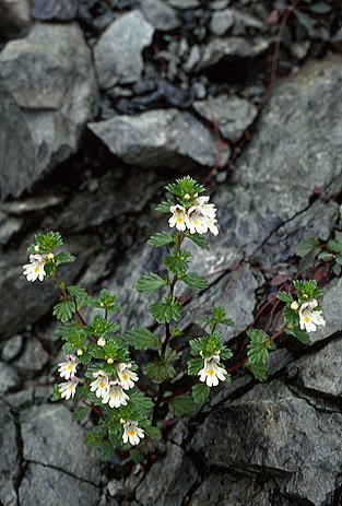 高山帯の礫地や乾いた草地に生える一年草。高さ5〜15センチ。苞葉は萼に腺毛がない。葉や萼の先が鋭くとがる。