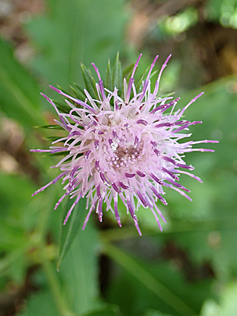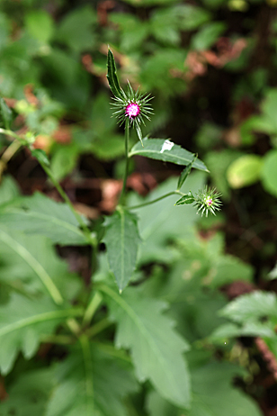 キク科アザミ属 分布 伊豆諸島 花期 9~10月 特徴 林高さ70~150センチの多年草。根出葉は普通花時には枯れる。 茎葉は卵形~倒卵形、下部に大型でやや肉質のものがつき、刺があまり発達しないのが特徴。頭花は点頭または斜上し、紅紫色で径約3センチ。総苞は椀形~鐘形、総苞片は長く開出~大きく反曲するものから、先端が短くて開出するものなど変異が多い。 撮影手記 島の林道に多く生えていた。季節外れの花が一つ咲いて撮ることができた。前日島案内していた人からハチジョウアザミは刺が少ないので山菜としても利用価値が高いと。いつの日かハチジョウアザミの天ぷら食べてみたいものだ。 |