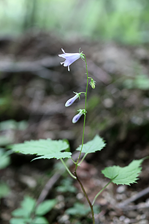 | キキョウ科ツリガネニンジン属 分布 本州・四国・九州 花期 8月 特徴 山地の草原や林のふちに生える草丈50〜100センチの多年草。茎は直立するが上部で傾き、時に上部で分枝する。毛はないものが普通も、時に長毛のあるものがある。 葉は互生し、長い柄があり、卵形〜広披針形で薄くてやわらかく、縁に粗い鋸歯がある。 花は茎頂にまばらに円錐花序につき、垂れ下がる。花冠は淡青紫色で、先端が広がった鐘形、長さ2〜3センチ、先はやや反り返る。花柱は花冠から突き出ない 撮影手記 12年、尾瀬の樹林の中の登山道にて撮影。私にとってソバナは今まで見ていたような、見てなかったよう花。撮影したときも何気なくデジカメ一眼のシャッターを切った。帰宅後、私にとって初撮影の花であることがわかった。 |