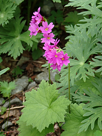 | サクラソウ科サクラソウ属サクラソウ節 分布 東北〜中部地方 花期 6〜7月 特徴 亜高山帯の湿った地に生える多年草。高さ15〜40センチの多年草。花は直径1.5〜2.5センチ。3〜9個ずつ1〜2段につく。花筒は萼のほぼ二倍体。葉は円形で5〜12センチ、掌状に7〜9裂する。 葉柄は15〜25センチで花茎とともにほとんど毛がない。 撮影手記 毎年、再撮影しようと思いつつ、いまだに実現できずにいる。ここにアップしたのはネガフィルムのもの。 76年、初めての北アルプス白馬岳から朝日岳の縦走。霧の中咲いているオオサクラソウを撮影。 79年、飯豊連峰登山のカイラギ沢雪渓の入り口に咲いていた。 25年、オオサクラソウを目的に八方尾根へ。歩き始めて一眼レフが動かないことを判明。失意で歩く。小さな雪渓を登ると、雪解けの草地に目的のオオサクラソウが咲いていた。オリンパスTG−7で撮影するが、なんとく物足らなかった。山小屋につき、一眼レフをいじっていたら、奇跡的に復活。翌日、心行くまで時間かけて、撮影することができた。 |