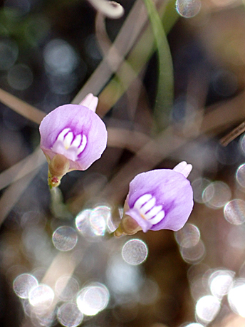 | タヌキモ科タヌキモ属ミミカキグサ類 分布 北海道・本州。四国・九州 花期 6〜9月 特徴 ごく短く花序が穂状に見えることから。湿地に生える多年草の食虫植物。地下茎に捕虫網があり。葉は長さ2〜3.5ミリのヘラ形。花茎は高さ10〜30センチになり、上部に直径4ミリの紅紫色の花をつける。 撮影手記 天然記念物指定の千葉県山武市の食虫植物群生地にて撮影。 根に捕虫網があり、水中のプランクトンを捕らえて栄養とする。 私は高校生の部活で「食虫植物研究会」に属していたので、食虫植物は今でも興味深い。 |