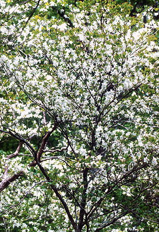 ツツジ属ミツバツツジ亜属 分布 東北〜近畿 花期 5〜6月 特徴 別名シロヤシオ。東北から近畿・四国にかけての太平洋側の山地の主に岩場に生える。高さ4〜6メートルになり、よく分枝する。葉は枝先に5個輪生状につき、倒卵形楕円形または菱形状楕円形で長さ2〜4センチ。葉と同時に枝先から混芽から1〜2個の花が咲く。花冠は直径3〜4センチの広い漏斗形で5裂する。雄しべは10個。花糸の基部に白い毛がある。 撮影手記 家業を継ぐ前、私は仙台で過ごした。家業を継ぐための修行?が名目であったけれど、本音は誰一人知り合いのない土地での一人暮らしにあこがれから。友人を求めて山のサークルに入り、たくさんの友人と思い出を築いた。大東岳での別名シロヤシロの美しさの思い出が今も残る。 左 1981年5月31日 大東岳 キャノンAE−1 FDマクロ100ミリ |