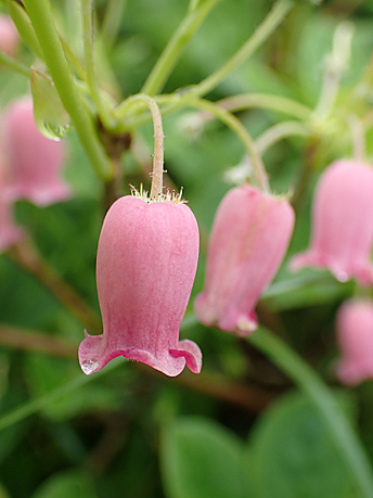 ツツジ科ヨウラクツツジ属 分布 北海道・本州中部以北・四国 花期 5~7月 特徴 山地に生え、高さ�1~2メートルになる落葉低木。ガクヨウラクと比べて額が目立たない。葉は枝先に輪生につき、長さ5~7センチの倒卵形、鋸歯状の粗毛がある。裏面は緑白色。枝先に紅色の花が5~10個つく。花は筒形で長さ1.5センチ。内側の上部に毛がある。 撮影手記 ウラジロヨウラクは主に日本海側。ガクヨウラクは太平洋側に主に分布しているが、尾瀬ならび月山では両方とも見ることができる。月山ではウラジロヨウラクが数多く見られた。 左 2012年6月17日 尾瀬 キャノン50D EF50ミリマクロ |