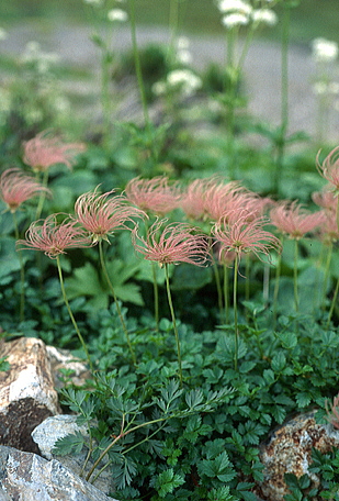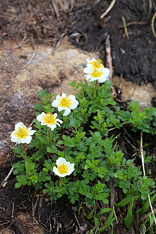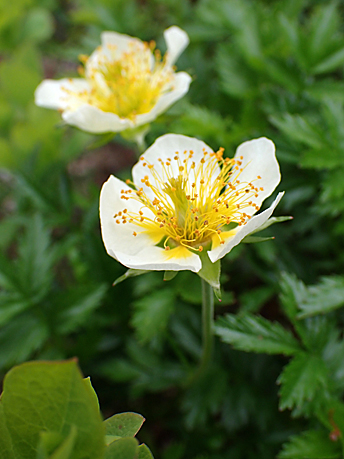 | バラ科チングルマ属 分布 北海道・本州中部以北 花期 6〜8月 特徴 果実の形を稚児車に見立てたことから。亜高山〜高山の湿地や礫地に生える高さ10〜20センチの草状の小低木。枝は地を葉って広がり、マット状になる。葉は奇数羽状複葉で7〜9小葉からなり、小葉は狭倒卵形で長さ0.5〜1.5センチ。光沢があり、縁には鋭い鋸歯がある。花は茎頂に1個つき、白色の5弁花で径2〜3センチ。花柱は花後長く伸び、白毛が密にある。ダイコンソウ属にする説もある。 特長 代表的な高山植物。ときには群生していて登山者の目を楽しませてくれる。絵になりやすく、私も各地で撮影してきている。尾瀬の至仏山では、木道脇に群生していて、ブヨと急坂に苦闘していた私をなぐさめてくれた。 |