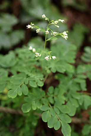 | ミカン科マツカゼソウ属 分布 本州宮城県以南・四国・九州 花期 8〜10月 特徴 山野の林縁などに生える高さ50〜80センチの多年草。葉は3回3出羽状複葉で、質薄く。油点がある。臭気がある。枝先に集散花序を出し、白色の四弁花を多数開く。 撮影手記 この花を見ると、いつも野生のかすみ草と思ってしまう。もちろん園芸植物のカスミソウとは科も異なるが。雰囲気は似ていると思う。 |