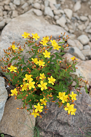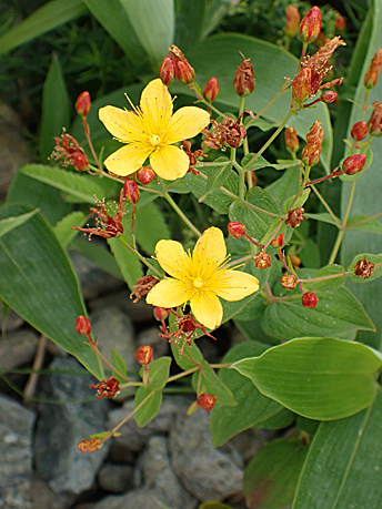 オトギリソウ科オトギリソウ属 分布 東北南部・関東北部・中部 花期 6〜8月 特徴 別名ミヤマオトギリ。亜高山から高山の草地や林縁に生える多年草。高さ10〜30センチ。葉は対生して長さ1,5〜3センチの卵状楕円形。ふちに黒点、、葉面に明点がある。花弁は黄色で長さ1.5センチ。集散状につく。 撮影手記 94年、北岳において高山病の頭痛と吐き気に悩みながら撮影。普段なら縦位置で撮影するのだが、その余裕なく横位置において撮影。 22年、山梨県のある山において、霧雨に濡れたシナノオトギリを撮影することができた。 |