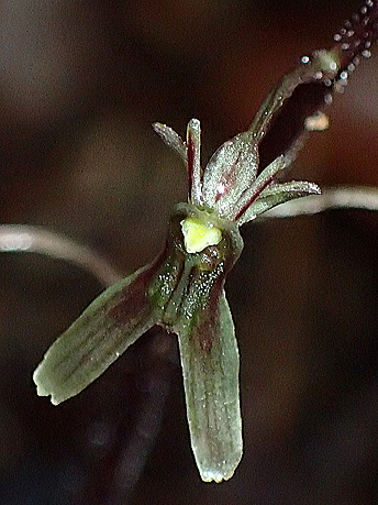 ラン科フタバラン属 分布 宮城県以南〜琉球列島 花期 3〜4月 特徴 低山の常緑樹林帯の林床に生える、高さ10〜30センチの多年草。茎は四角。葉が高い位置につく。花は灰緑色、紫褐色の部分がある。唇弁以外は強く後方にそる。 撮影手記 90年代前半は千葉県の清澄山によく行った。そのときの撮影のスタートになったのがヒメフタバランであった。落ち葉の中に溶け込んでいて、なかなか見つけにくかった。 そのころ、高尾山の仙人と言われたAさんよりヒメフタバランの咲く場所を教えていただいたが、16年になってやっと確認。以来、春早い高尾山にヒメフタバランの撮影に通うことに。 アップで見ると、雌しべがペロ出して見るみたいで可愛い。 左 1991年3月17日 千葉県清澄山 キャノンF−1 タムロン90ミリマクロ |