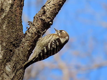 | コゲラ 小啄木鳥 キツツキ目キツツキ科 時期 留鳥 環境 平地から山地の林 撮影手記 目的の野生ランを撮影でき、山を下ると多くのハイカー・観光客が立ち止まってなにかを撮影しているのはる。見ると立ち木に穴を開け巣作り?しいているコゲラがいた。超望遠コンデジ・NikonクールピクスB600で撮影。50回ちかくシャッターをおしたけれど、ピントが合ったのは上の3枚だけだった。 24年、東京港野鳥公園ならび北本自然公園・水元公園でも撮影できた。 コゲラが エサを求めて幹を上へ上へとちよこまか動くのて撮影づらい。巣作りの時は、同じ場所にいるので撮影しやすかった。 |