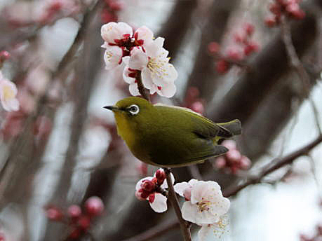 | メジロ 目白 スズメ目メジロ科 時期 留鳥または漂鳥 環境 平地の樹林か比較的多い公園。住宅地から山地の林・竹林など。 撮影手記 16年、神奈川県秦野市の権現山の弘法山公園にあるバードサンクチュアリにて、寒気のなか一日粘り、水飲み場にメジロやシメなど数多くの野鳥を撮影することが出来ました。 18年、サークル仲間と神奈川県・田浦梅林へ花見。宴会で盛り上がっている皆をよそに一人離れ、梅の花をつつくメジロの撮影に夢中。 メジロは、私のが住む品川区にもときどき見ることがある。スズメやカラス・ドバトしかいないと思っていた区内の街中でもメジロを見ることができるのは意外であった。 その後、メジロの撮影機会は多く、最近ではメジロと梅・椿という春の定番のショットを撮り、一人満足感を得た。 |