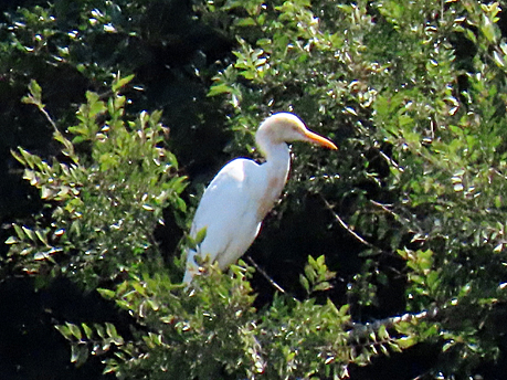 東京港野鳥公園のスタッフから、今アマサギが来ているよと、教えてくれた。一番観察小屋より対岸の林にとまっていたけれど、遠すぎて、デジタルズームになってしまい、残念ながらピントが今一つ。