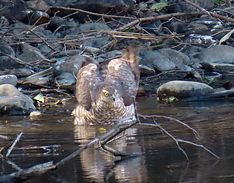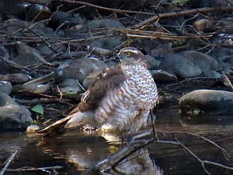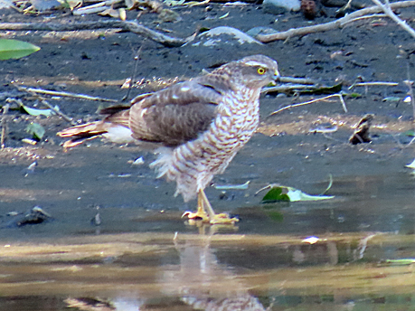 | ハイタカ 灰鷹 タカ目タカ科 時期 留鳥 環境 平地から亜高山帯の林 撮影手記 23年、光が丘公園。サンクチュアリで構えていると、誰かがハイタカが来たと。あわてて場所教えてもらうが特定できず、ピントがあわず、かろうじて一枚のみ撮ることができた。NikonクールピクスB600。 小型で超望遠がきくコンデジだけれど、ピントが合わせずく撮影を逃してしまうことがよくある。 24年、東京港野鳥公園。ハイタカを撮影出来てテンションが上がった。近くにいた野鳥の会の人に聞くと若鳥だけと゜雌雄はわからないと教えていただく。 25年、ハイタカの水浴びを狙い、なんども東京港野鳥公園に通い、やっと撮影することができた。 |