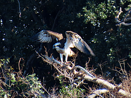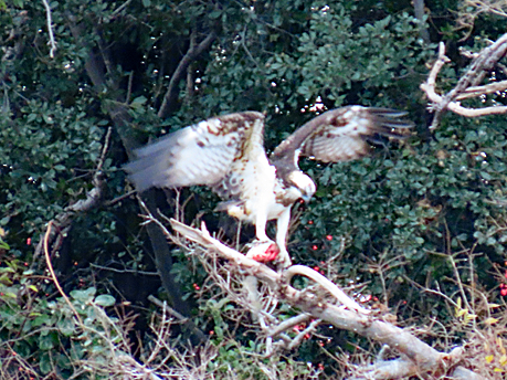 | ミサゴ 鶚 タカ目タカ科 時期 留鳥 環境 海岸・河口・湖沼・池・河川など。 撮影手記 24年、東京港野鳥公園。この年の冬は昨年まで飛来の記録がなかったミサゴが、狩場・住処し定着したみたいだ。まさに公園はまさに、ミサゴ祭り。訪れるウォッチーの心をとらえた。お気に入りの枝にとまり、捕まえた魚をトビやカラスに気をつけながらの食事。羽田飛行場から飛び立つジェット機が背景に重なったり、優雅な飛来姿をおがめたりした。ぜひ、いつまでも定着してほしい。 ミサゴがお気に入りの枝にとまる。これから飛び立つまで長い。カメラを構え、寒い中待機する。ところが、ちょっと油断し、カメラのファインダー放したとき、飛び去ってしまうことは、たびたび。また、とらえてもファインダーにおさまらず、羽が切れてしまう写真になってしまうことも多い。何度も、シャッターチャンス逃してばかりだ。 |